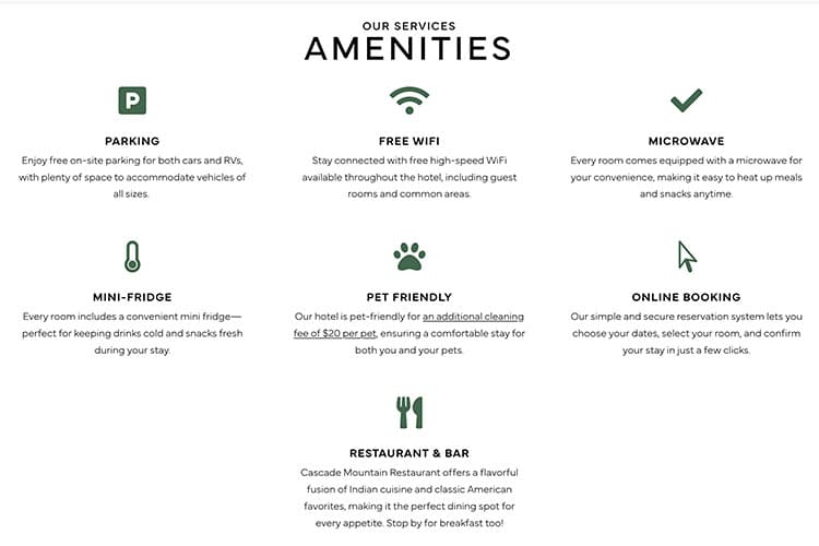 Cascade Mountain Lodge is a welcoming, conveniently located motel along Highway 20 in Concrete, Washington — the perfect base for travelers exploring the rugged beauty of the North Cascades. Recently remodeled rooms offer modern comforts like free Wi-Fi, mini-fridge, and microwave, while on-site parking and pet-friendly options make stays easy for road-trippers and adventurers alike. Guests love the clean, fresh rooms, friendly owners, and proximity to local shops, restaurants, and outdoor activities. The neighboring Cascade Mountain Restaurant serves up a blend of Indian and classic American dishes, so dining is right at your doorstep. With stunning mountain vistas and abundant hiking, wildlife viewing, and scenic drives nearby, Cascade Mountain Lodge is a cozy choice for both short stays and extended explorations of the Skagit Valley and the North Cascade region.
